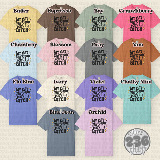 Cat Says You're A Bitch Tshirt | Comfort Colors | Funny Adult | Mental Health | Sarcastic| Humor